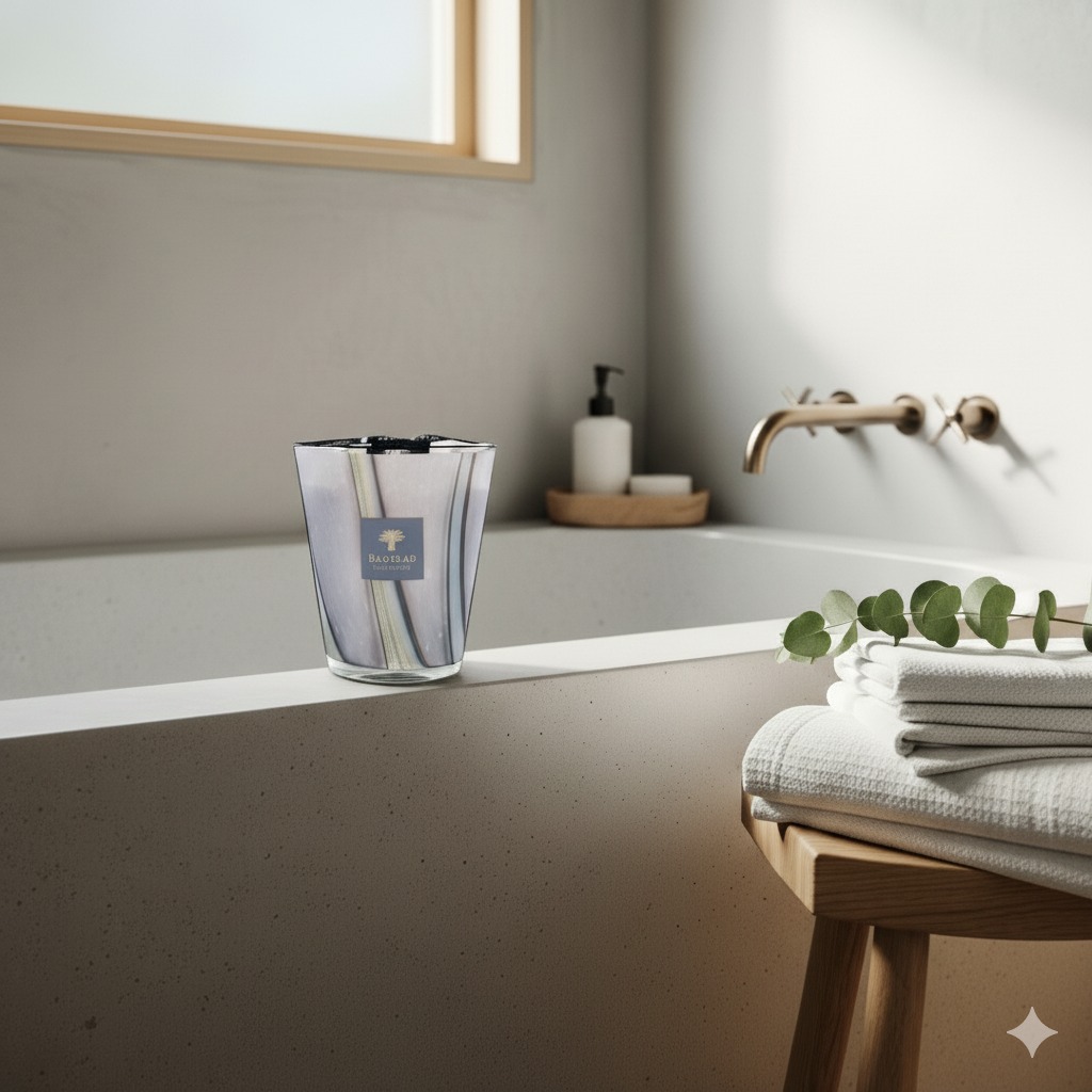 Le verre est soufflé à la main, avec des lignes verticales qui rappellent les troncs et l’architecture des forêts. Les nuances oscillent entre le gris et le lavande, ce qui apporte une élégance subtile. Bougie à 4 mèches pour une diffusion homogène.